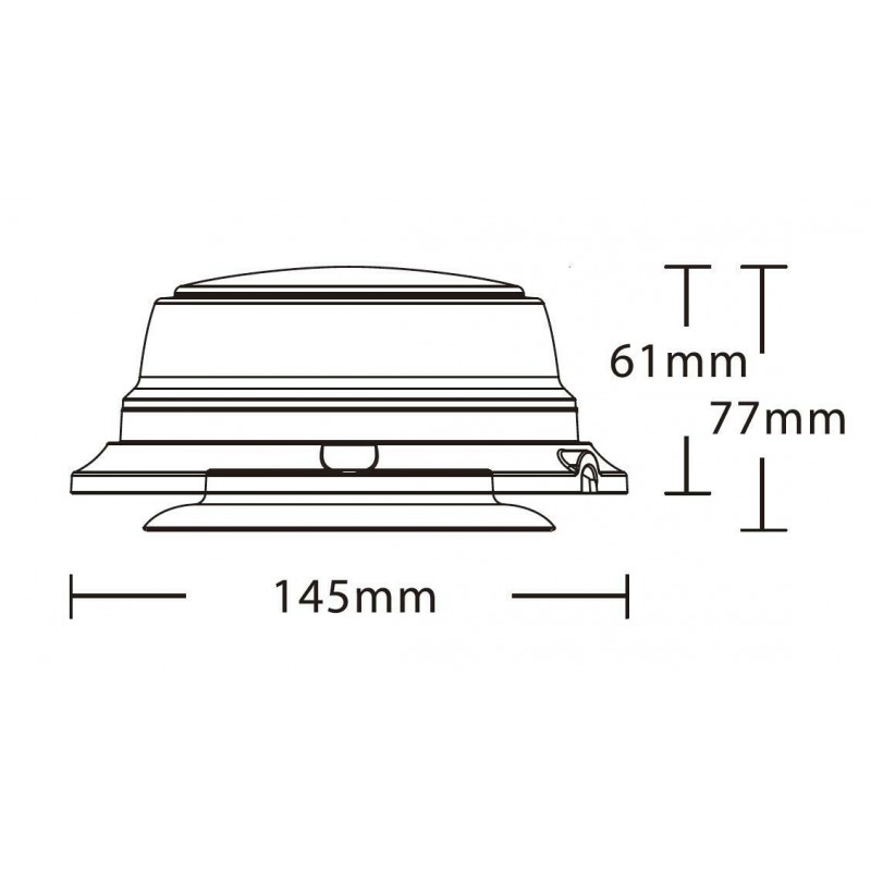 LED BEACON - MAGNETIC BASE. 12x1 W LED. Single flash, double flash, quadruple flash, rotation. 4x light mode. DIMENSION: HEIGHT - 77 mm, D: 145 mm. Cable 3,1 m. Homologation R65. Meets IP 67 protection standards. -30 °C to + 60 °C.